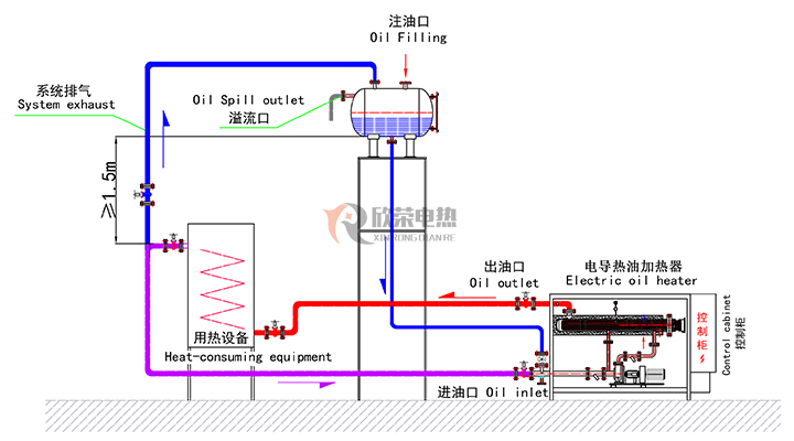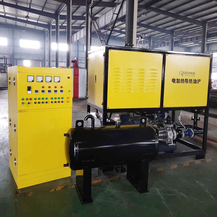 电加热导热油炉概述 电加热导热油炉是一种新型、安全、高效节能,低压(常压下或较低压力)并能提供高温热能的特种工业炉,是一种以电为热源,导热油为热载体,利用循环油泵强制液相循环.将热能输送给用热设备后.继而返回重新加热的直流式特种工业炉,如此周而复始,实现热量的连续传递,使被加热物体温度升高,达到加热的工艺要求。 电加热导热油炉结构及原理 电加热导热油炉系统由防爆电加热器、有机热载体炉、换热器(可配置)、控制柜、热油泵、膨胀槽等组合成一个撬块,用户只仅需接入电源、介质的进出口管道及一些电气接口即可使用。 导热油加热炉是将是将电加热器直接插入有机载体(导热油)中直接加热,利用循环泵,强制导热油进行液相循环,将热量传递给用一个或多种用热设备,经用热设备卸载后,重新通过循环泵,回到加热器,再吸收热量,传递给用热设备,如此周而复始,实现热量的连续传递,使被加热物体温度升高,达到加热的工艺要求。 电加热导热油炉采用数显温控仪控温,具有超温报警、低油位报警、超压力报警功能,它是化工、石油、机械、印染、食品、船舶、纺织、薄膜等行业中一种高效节能的供热设备。 电加热导热油炉产品特点: 1.具有完备的运行控制和安全监测装置,能实行自动化控制。 2.能在较低的运行压力下,获得较高的工作温度。 3.热效率高,可达95%以上,控温精度可达±1℃。 4.设备体积小,安装较灵活,宜安装在用热设备附近。